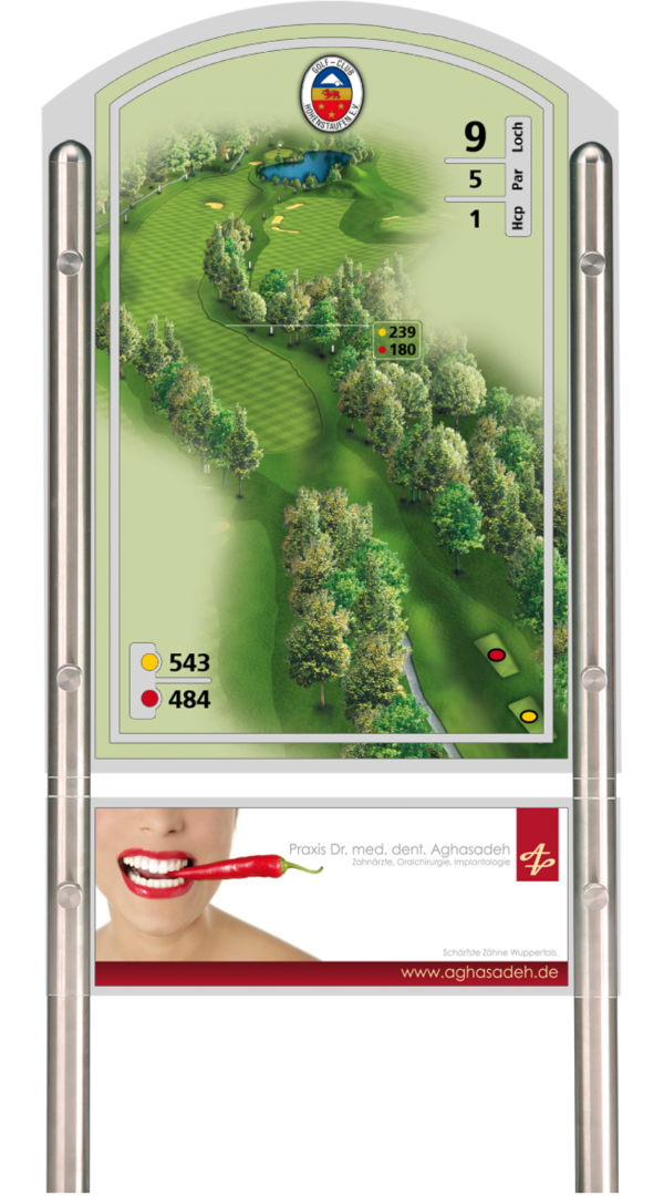 Mit Beschilderungen, Scorekarten, Birdie Books und Spielbahngrafiken den Golfclub aufwerten.